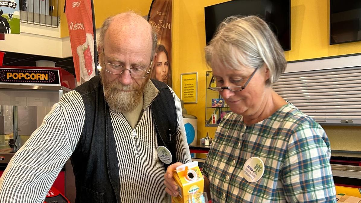 Der Versuch, noch schnell auf einen größeren Kinosaal zu wechseln, schlug leider fehl und sorgte im Vorfeld für Aufregung. Am Ende passten dann doch fast alle in den Saal und genossen die Vorstellung, übernutztes Ackerland wieder der Natur zu überlassen, wie auf dem Landgut Knepp im Süden Englands praktiziert. Dr. Andreas Zahn berichtete von den über 15 Weide Projekten im Landkreis Mühldorf, die der BN inzwischen betreut. Er erklärte, dass diese wegen der geringen Ausdehnung und der fehlenden Vernetzung nur einen winzigen Beitrag zur Wiederansiedlung seltener Arten sein können. Matthias Reißaus, der seine Murnau-Werdenfelser Rinder und die beeindruckenden Wasserbüffel auf den Weideflächen grasen lässt, betonte, dass das so erzeugte Fleisch auch vermarktet werden muss, um die Projekte zu erhalten. Die Vorsitzende der BN Ortsgruppe Waldkraiburg, Bettina Rolle, freute sich bei ihrer Begrüßung über den wachsenden Zulauf und die Beteiligung vieler Menschen bei den drei großen Projekten in Waldkraiburg: „wilde Weiden“ wie die BN Kiesgrube in Haigerloh, Begrünung des alten Beton-Wasserbeckens im Stadtpark und die Kino Events zum Thema „Wildnis wagen“. Neben all dem Engagement dürfe das gemeinsame Feiern nicht zu kurz kommen. Und so war es auch heute wieder: Sekt, Apfelsaft von Streuobstwiesen und Sauerteig Brot aus dem Innthal zur Begrüßung sorgten für ein schönes Gemeinschaftsgefühl.