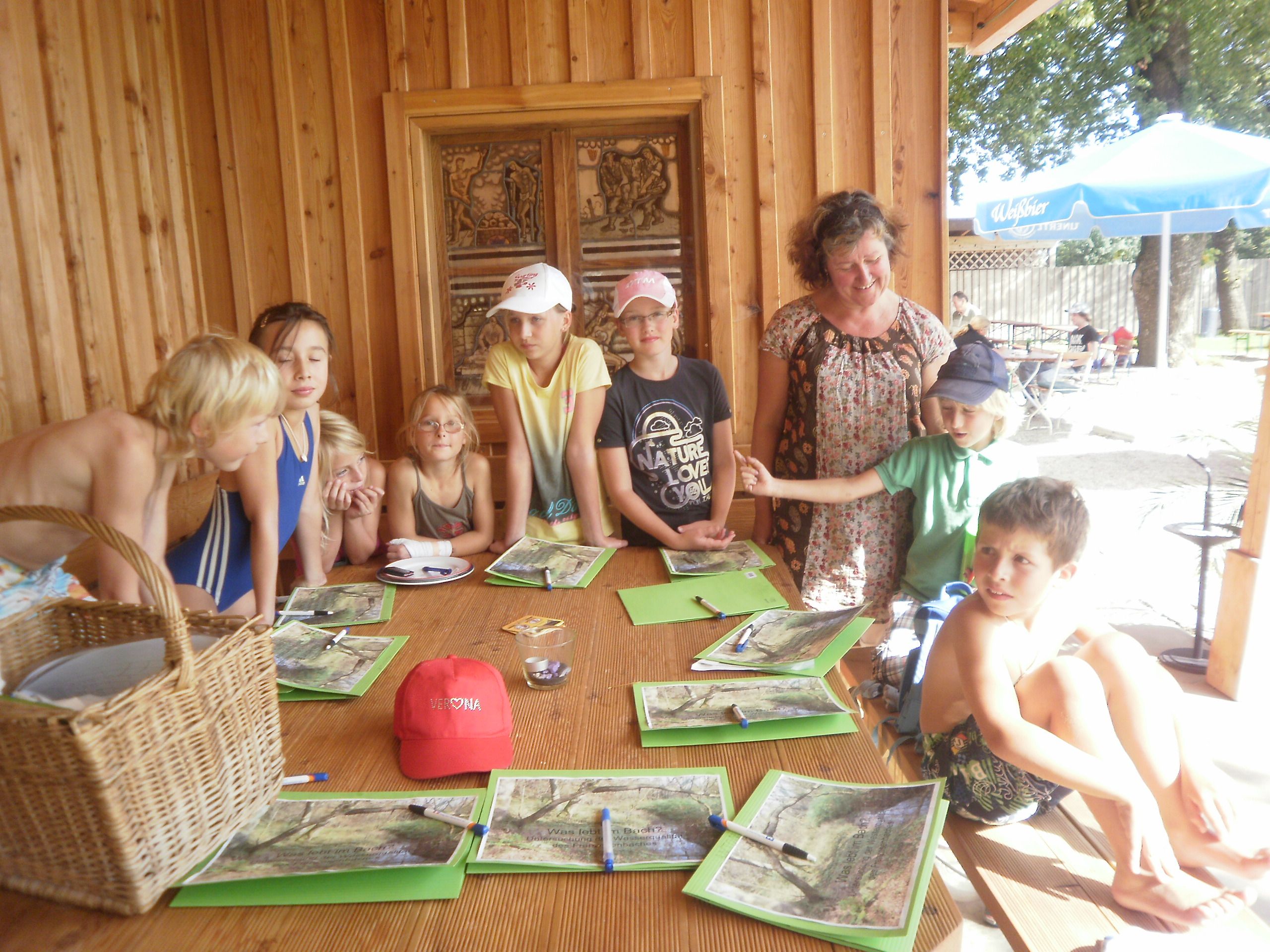Im Rahmen des Haager Ferienprogramms bestimmten am Donnerstag den, 11. August junge Forscher die Wasserqualität des Franzosenbaches beim Haager Freibad anhand von Kleinlebewesen. Mit dem Sieb wurde vom Grund des Baches Kies und Sand geschöpft, auf einem Teller ausgebreitet und die Larven und Flohkrebse gezählt. Zum Schluss ging es ins Freibad, wo die Ergebnisse ausgewertet wurden. Natürlich kam im Freibad auch der Spaß nicht zu kurz.