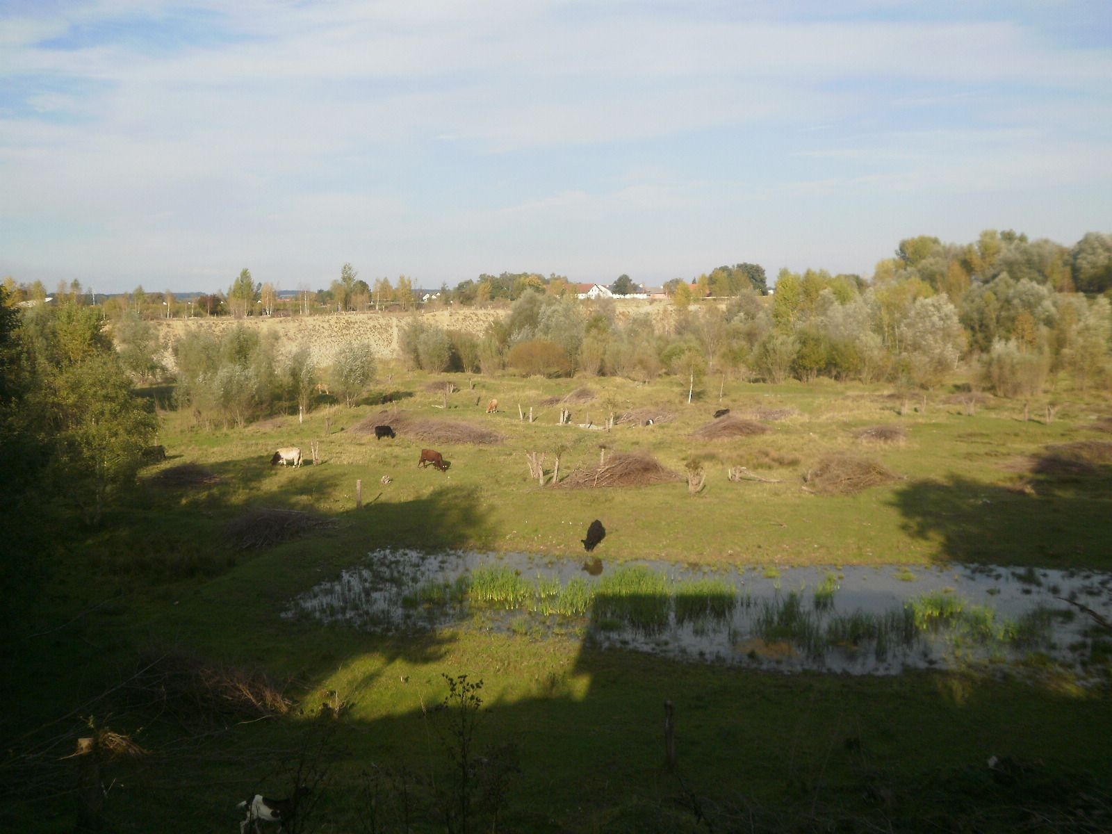 Frösche und Kröten waren freilich bereits ins Winterquartier abgewandert, doch ein paar Libellen waren noch über den Wasserflächen zu sehen. Vor allem damit die Wasserflächen in der Kiesgrube wieder besonnt werden, wurde die Rodungsaktion im Winter durchgeführt. Denn wenn der Bewuchs nicht von Zeit zu Zeit gebändigt wird, überwuchert er alles. Ziel des BUND Naturschutz bei der Pflege der Kiesgrube ist es, möglichst vielfältige Lebensräume für möglichst viele verschiedene Tiere zu schaffen und zu erhalten. Dabei helfen Rinder, Ziegen und Pferde – und von Zeit zu Zeit auch Menschen.