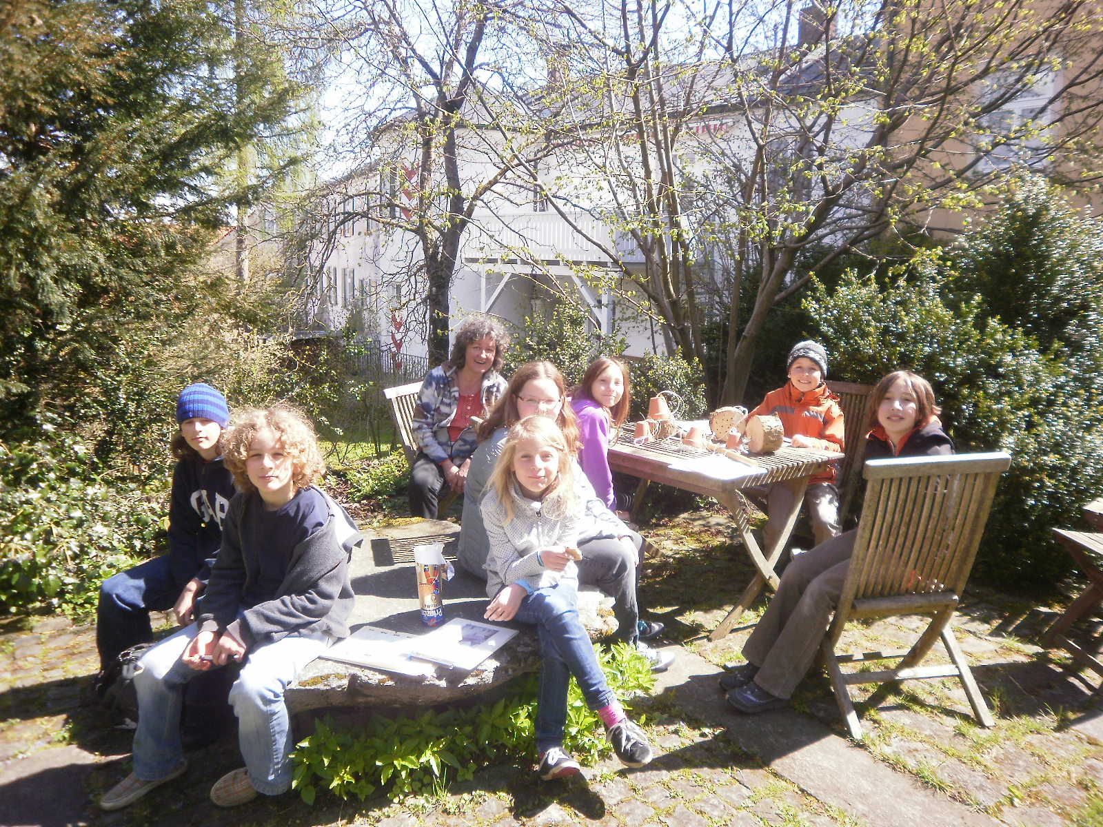 Für die Ohrwürmer wurden kleine Tontöpfe mit einem Sisalgeflecht gefüllt. Die Töpfe werden dann im Garten zunächst in einen Reisighaufen oder in eine Hecke gelegt und dann im Juni mit der Öffnung nach unten in einen Baum gehängt.