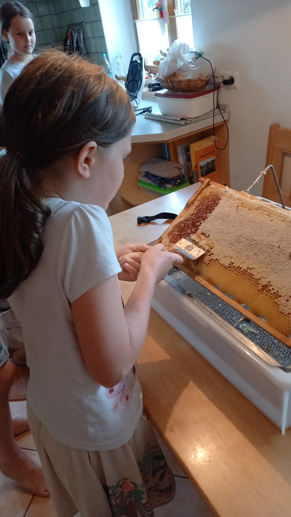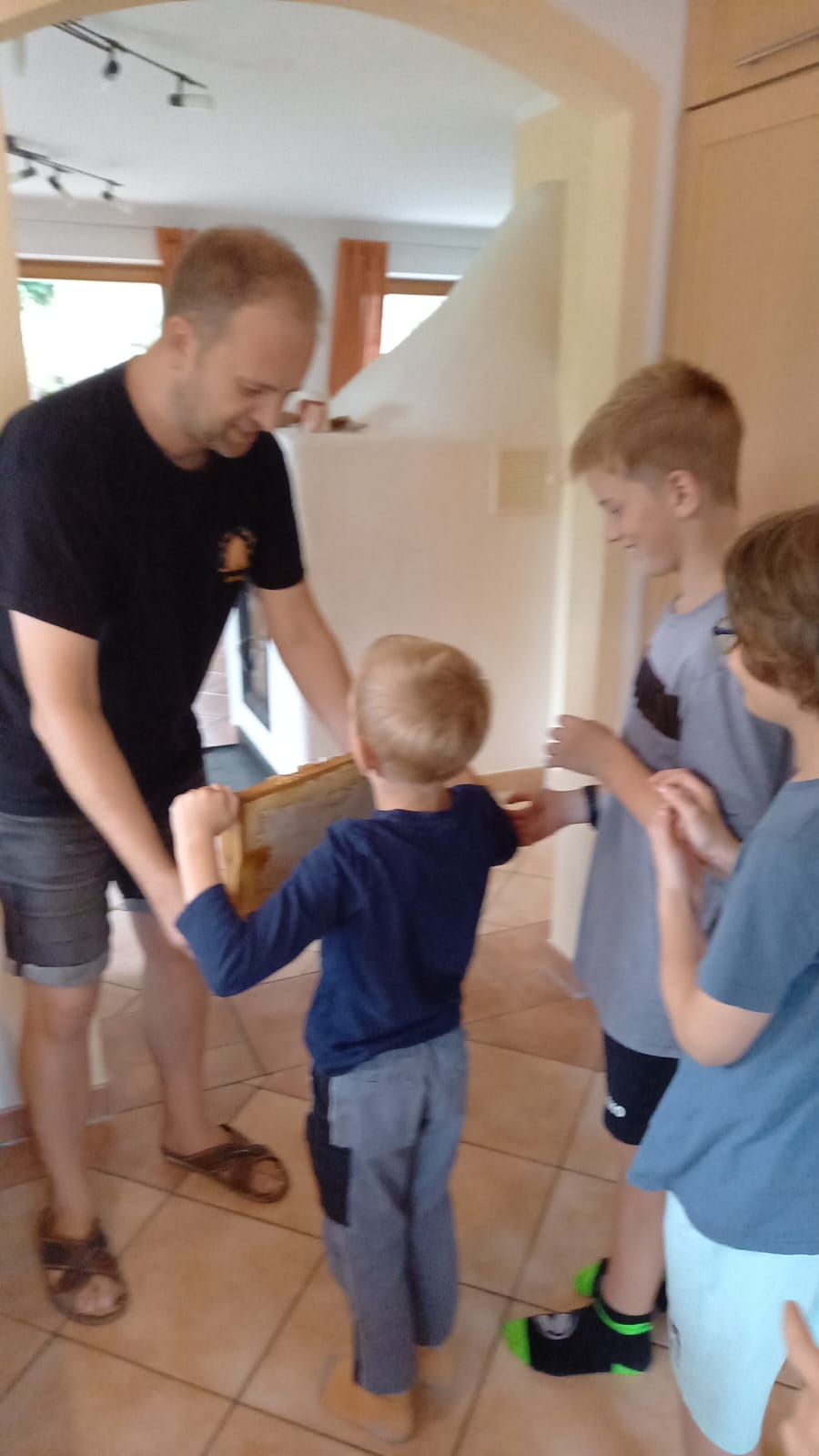 Dieses Jahr hatten wir einiges nachzuholen und haben jeden Monat eine Aktion gemacht. Unser Highlight war der Besuch bei Familie Marczynski und deren Bienen. Wir haben dort einiges über diese wundervollen Tiere gelernt und gesehen wieviel Arbeit so ein Imker hat. Wir durften selbst entdeckeln und Honig abfüllen. Und die leckeren Honigbrote und Honigwaffeln haben uns auch sehr gut geschmeckt.