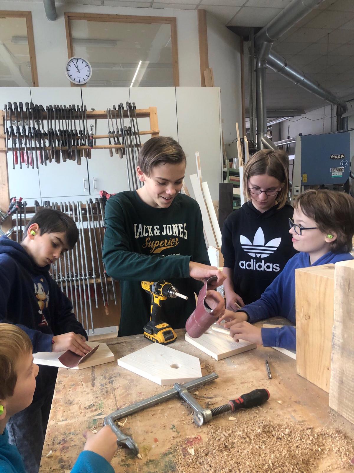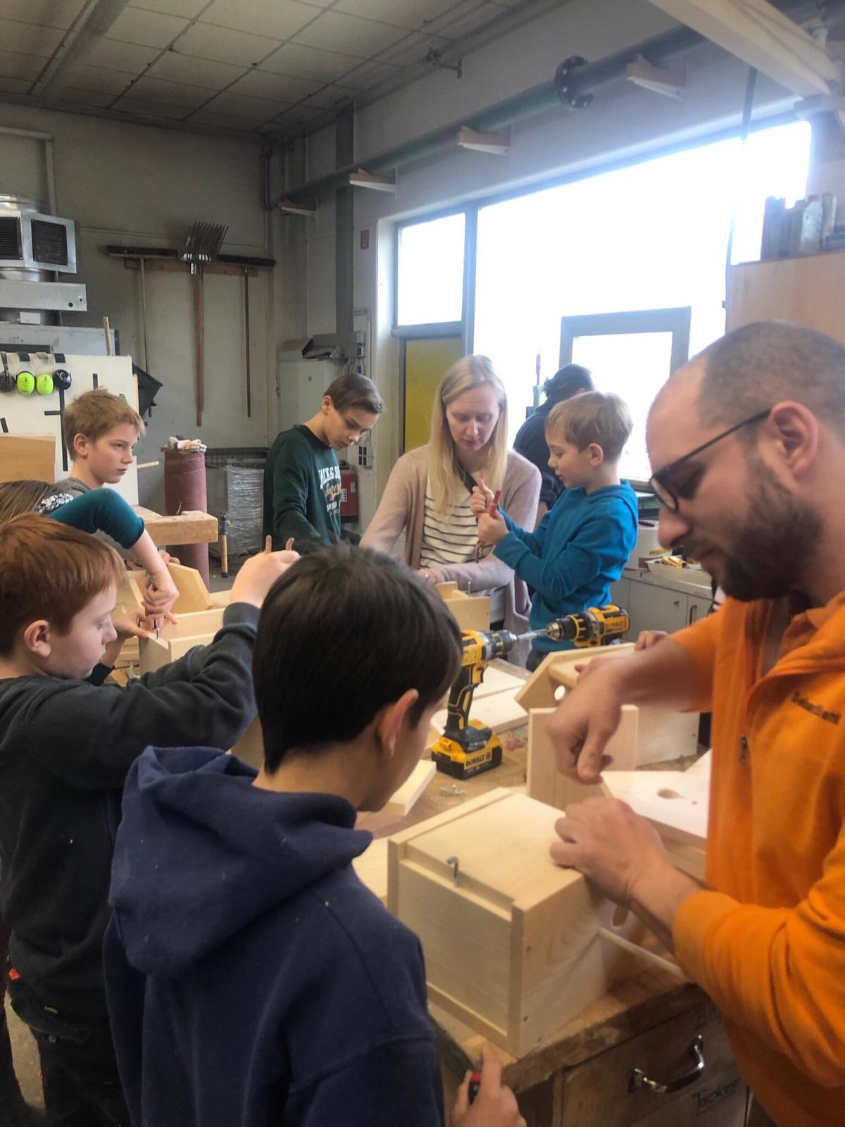 Das neue Jahr ist gleich ganz besonders gestartet! Wir durften im Januar in der Schreinerei Meyer Vogelkästen bauen. Sebastian und Sarah von der Schreinerei ließen uns ganz viel selbst machen und bei ganz viel mithelfen. So durften die Kinder das Holz mit schleifen und schneiden und später jedes Loch selbst vorbohren und jede Schraube selbst anschrauben. Sogar Dübel haben wir selbst gemacht, die als Anflughilfe an die Kästen kamen. Es war ein ganz toller Vormittag und mal schaun, wer von unseren Kindern dann seine Lehre bei ihnen machen wird.