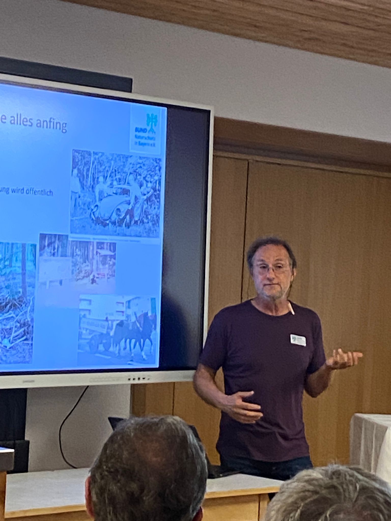 Am Abend begrüßte Doris Anzinger-Pohlus, zweite Vorsitzende der Kreisgruppe viele Ehrengäste aus der Politik, benachbarten BUND Naturschutz-Gruppen und befreundeten Verbänden. Die Landtagsabgeordneten Sascha Schnürer und Markus Saller sowie Landrat Max Heimerl würdigten in ihren Grußworten die Rolle des BUND Naturschutz im Landkreis. Dabei verwiesen sie auf die Schwierigkeit, im Landkreis Naturschutz und Regionalentwicklung unter einen Hut zu bringen. Die Beweidungsprojekte und der Toteiskesselweg sind bayernweit bekannt, die Umweltbildung ist erfolgreich und das Wasserbüffelfest lockt jedes Jahr viele Besucher an. Betont wurde das umfangreiche ehrenamtliche Engagement der vielen Aktiven in der Kreisgruppe und in den sechs Ortsgruppen, das klar belegt, wie sehr Natur- und Umweltschutz bei den Bürgerinnen und Bürgern verankert sind. Doch die Erfolge sind bedroht, wie Andreas Zahn in seinem Vortrag betonte: „Aufgrund der Erderwärmung ist mit dramatischen Umweltänderungen in baldiger Zukunft zu rechnen“. Er verwies auf die bereits sichtbaren Folgen des Klimawandelts im Landkreis. Gewässer trocknen immer häufiger aus und der Grundwasserspiegel sinkt.