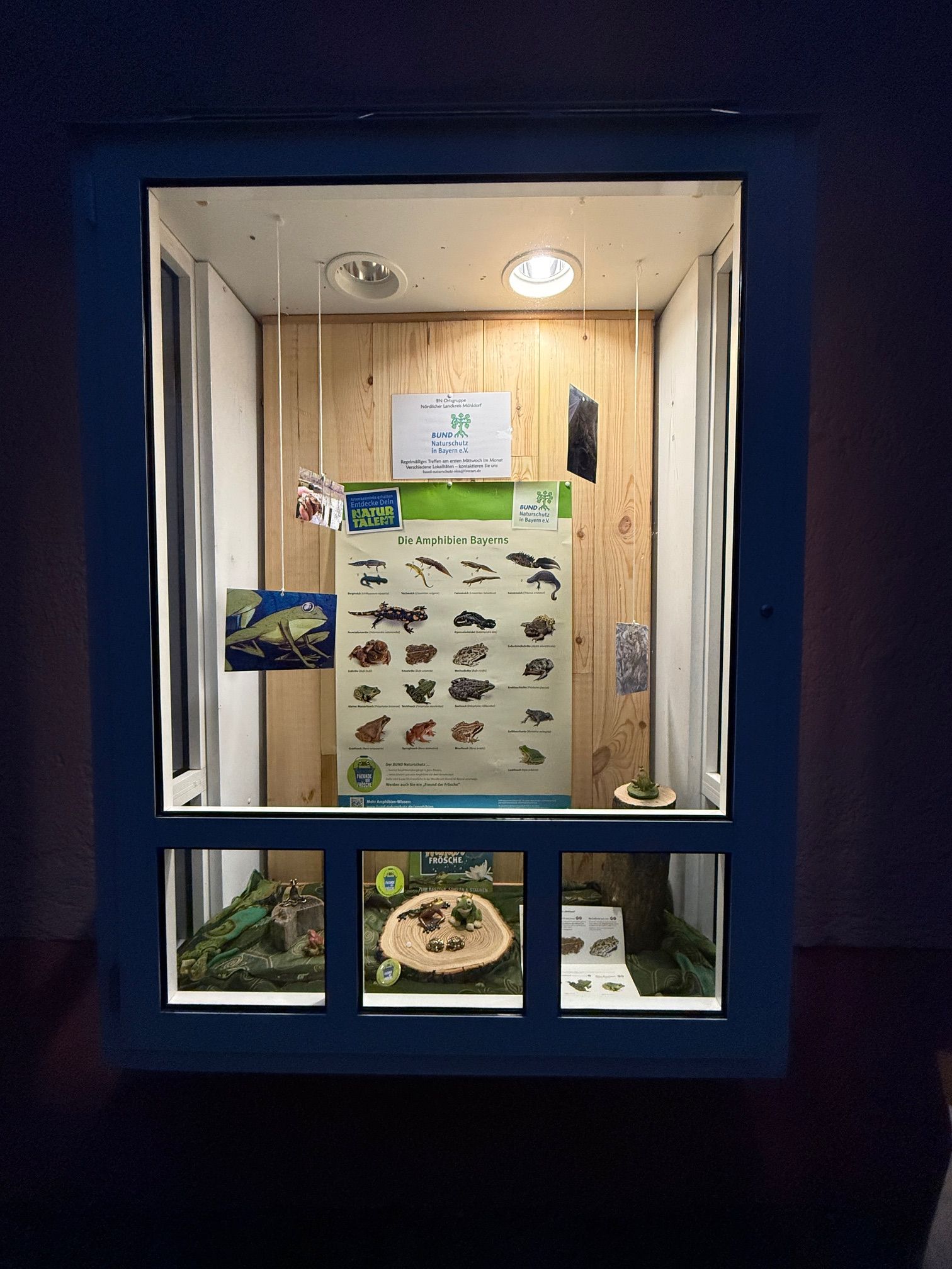 Die Ortsgruppe verfügt seit heute über einen eigenen Schaukasten. Der QUERdurchsBEET-Laden hat uns diesen Schaukasten freundlicherweise und für wenig Geld zur Verfügung gestellt. Eva und Christian Guse sowie Henriette Beck und Nina Lange hatten hier die richtigen Ideen, um den Schaukasten schmuck einzurichten. Das gegenwärtige Thema sind unsere heimischen Amphibien.