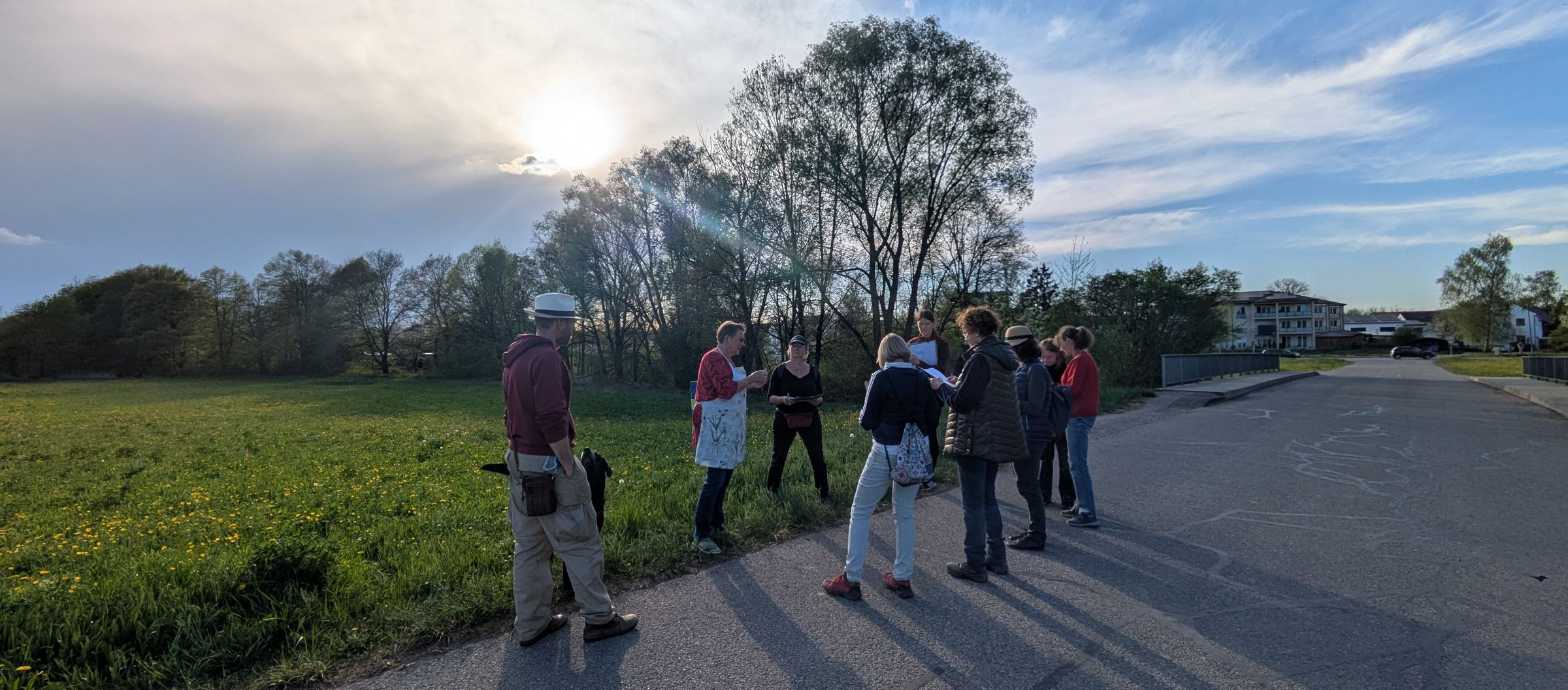 Unter Führung der Kräuterpädagogin Claudia Bauer von der Kräuterschule Dorfen schauten wir uns etwa zwei Stunden lang die Kräuter an den Wegesrändern an. Wir bekamen Tipps, wie man sie bestimmen kann, welche Inhaltsstoffe sie haben und wie man sie verarbeiten kann. Ob Sirup, Tee, Pesto oder Salat - es gibt viele Möglichkeiten, wie man die wertvollen Inhaltsstoffe aufnehmen kann. Die zehn Teilnehmerinnen waren sehr interessiert, haben sich die wichtigsten Infos mitgeschrieben und viele Fragen gestellt. Zum Abschluss gab's ein Stamperl Löwenzahnlikör und ein Brot mit Wildblütenbutter. Ein gelungener Abschluss.