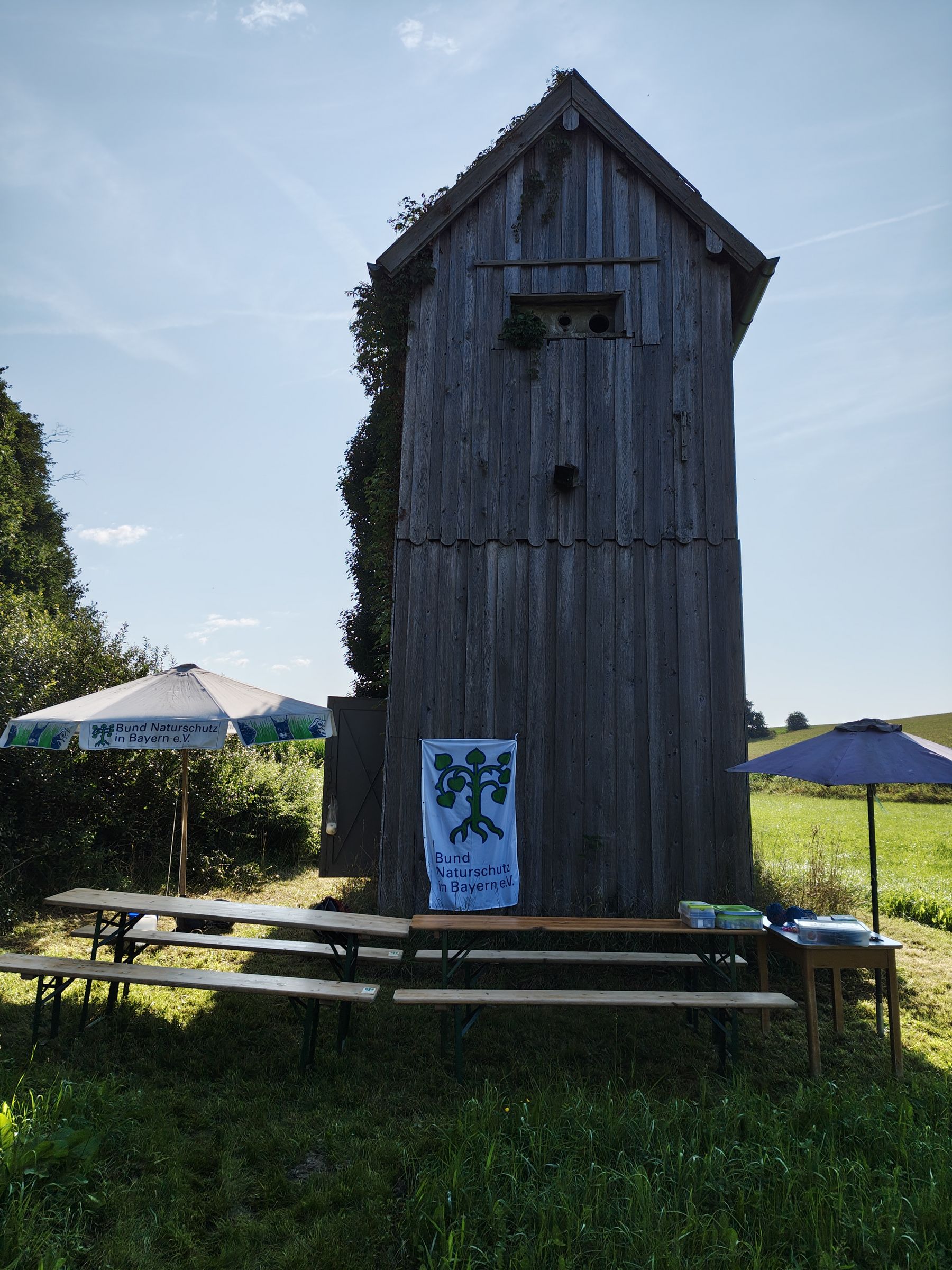 Sieben BN-Mitglieder trafen sich bei bestem Wetter am Trafohäuschen am Brunnenweg. Das damals überflüssig gewordene Gebäude pachtete die Ortsgruppe in 1998 für 0 Euro und für 15 Jahre von der Stadt Neumarkt-Sankt Veit. Seitdem verlängert sich der Pachtvertrag automatisch um ein Jahr.