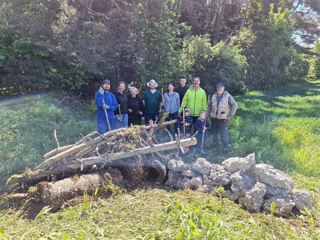 Am Waldrand des Umspannwerkes zwischen Aschau und Waldkraiburg baute die Ortsgruppe Aschau vom BUND Naturschutz mit fleißigen, freiwilligen Helfern eine Eidechsen- und Käferburg. Sie besteht aus Wurzelstöcken, Ästen, Rinde, Steinen und Sand.