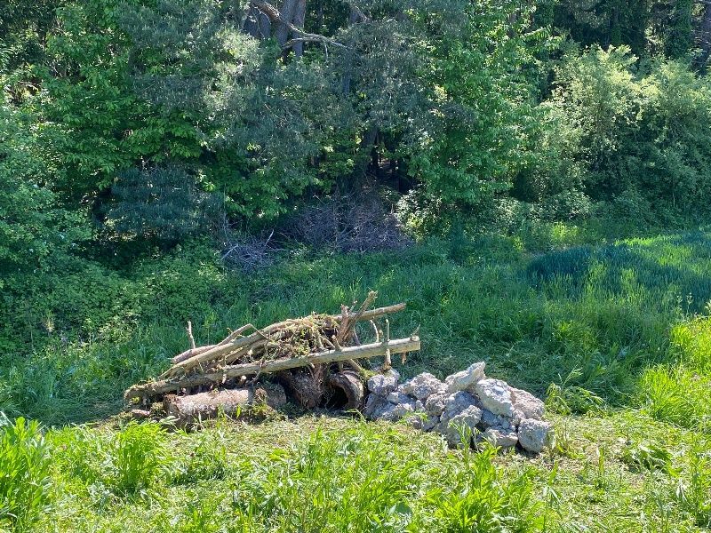 Solch ein von Menschenhand geschaffenes Biotop mit Totholz, Sand, Sonnenplätzen, Spalten und Ritzen ist lebendiger Lebensraum, Nahrungsquelle, Kinderstube, Baumaterial und Unterschlupf in einem.