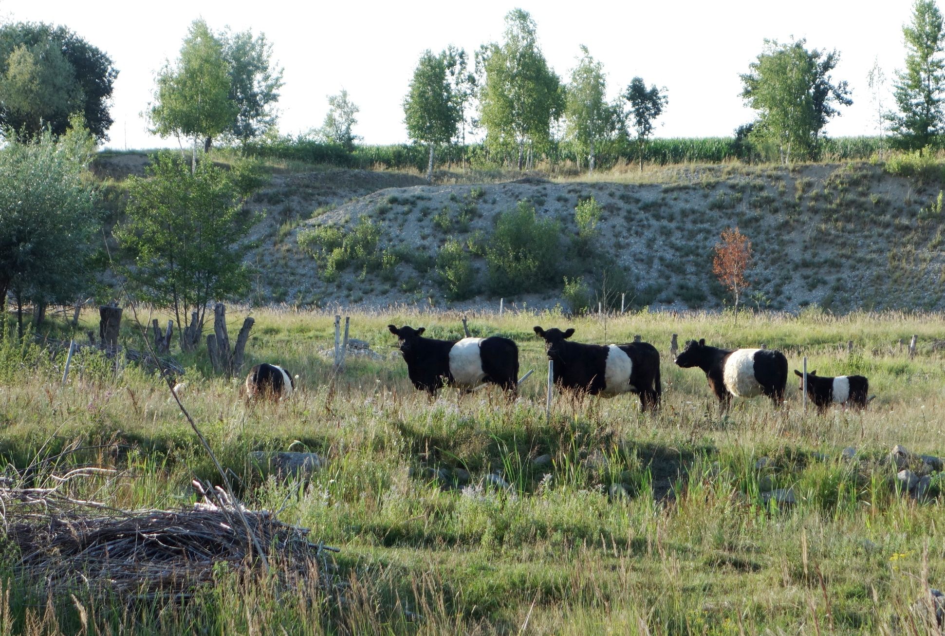 Wie schnell sich echte Wildnis einstellt und die Artenvielfalt wieder zunimmt, kann man anhand der verschiedenen Beweidungsprojekte im Landkreis sehr schön sehen und sogar nachweisen. Es reicht dabei aber nicht, Flächen sich selbst zu überlassen, entscheidend sind die großen Weidetiere. Mit ihrem Dung und mit ihrem Fressverhalten schaffen Pferde, Rinder und Wasserbüffel sehr schnell eine artenreiche Landschaft. Das geht so: Der Mist der Tiere zieht Insekten an. Fliegen, Käfer und ihre Larven locken wiederum Vögel an, die sich endlich mal wieder so richtig satt essen können.